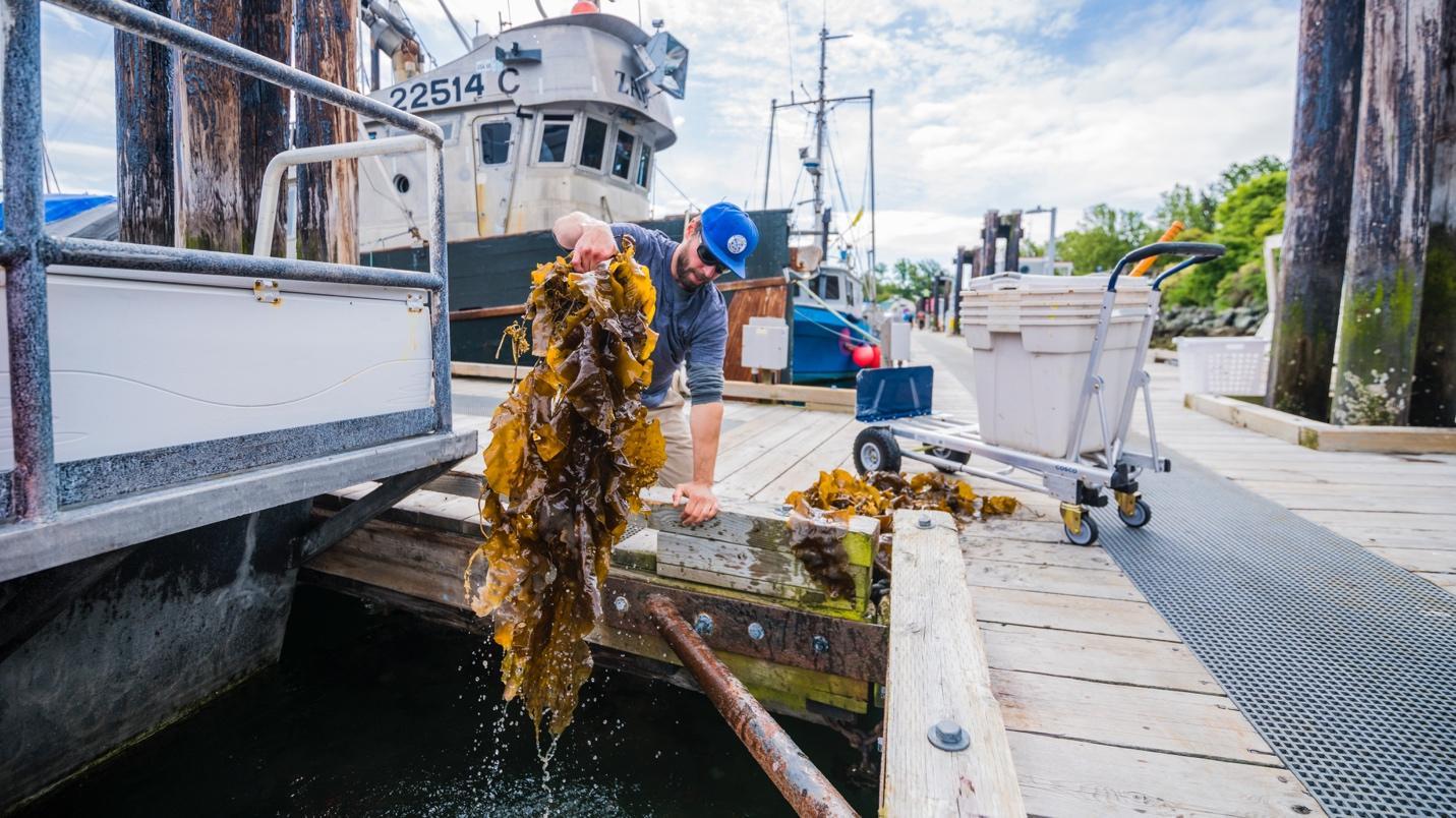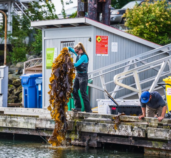It’s that time of the year again when perennial aquatic plants reach their peaks for speed of growth as well as for biomass protein and amino acid production.  It’s the summer solstice that signals our harvest.  Docks, vessels and other floating structures in harbours are weighted down by the incredible biomass that accumulates as sunshine and current exchange provide optimal conditions for plant growth.  We aim to recover and repurpose algae growth which is removed for facility maintenance and turn it into a fertilizer for on-shore gardening and agriculture.  Sea Forest Liquid Kelp Fertilizer is produced over 6-12 months through a cold-press breakdown process that allows for maximum nutrient retention.  By harvesting these plants, any excess accumulation of sequestered carbon is removed from the water source, thereby allowing waterways to absorb more carbon from the atmosphere and stabilize to a healthy PH for marine organisms that live there.
